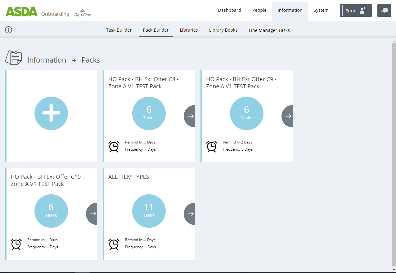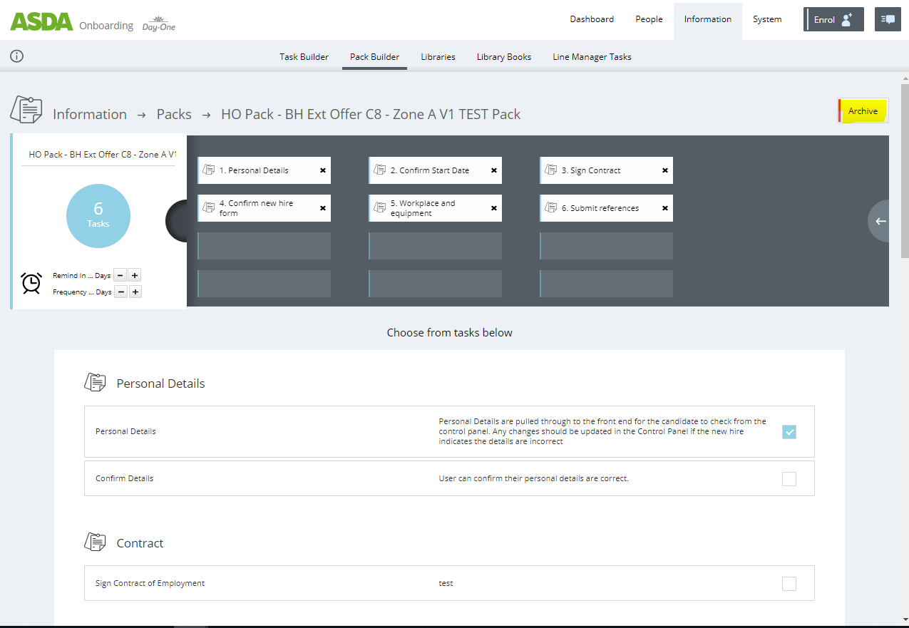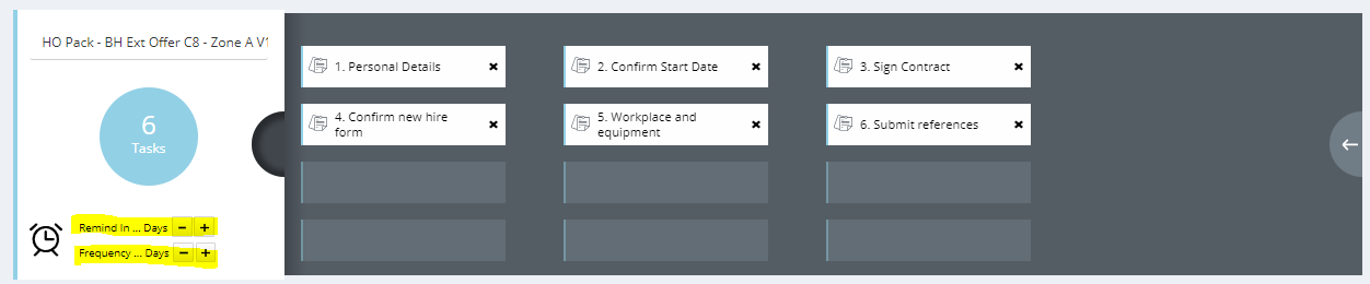 The [Pack] consists of any number [tasks] specific to the candidate being Onboarded and should consist of information such as;