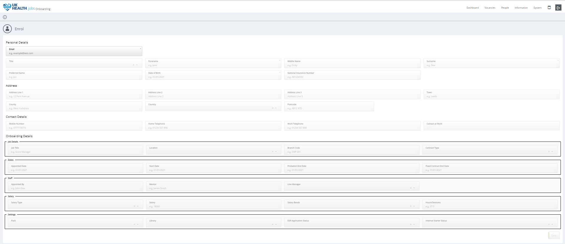 To add a new hire to the Day-One system manually, [Click Enrol to add a New Hire] button and the following screen will appear where the user can add the Personal Details and Onboarding Details, then click [Save].