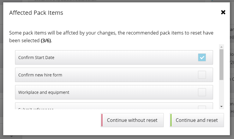 Before completing a new hire and moving them from preboarding to onboarding, the Control Panel user should check the pack information is correct.