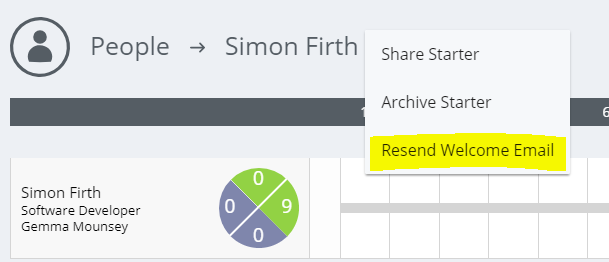 You can re-send the Welcome Email via the control panel by clicking on the [***] next to the candidates name in the personal details area within the CP