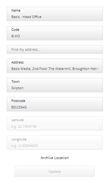 Here you can view, edit, add or archive your company locations