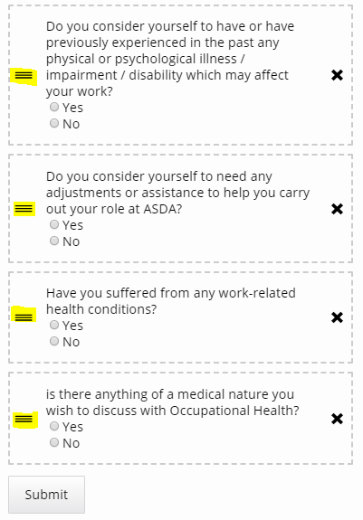 The user can drag and drop the questions into the correct order