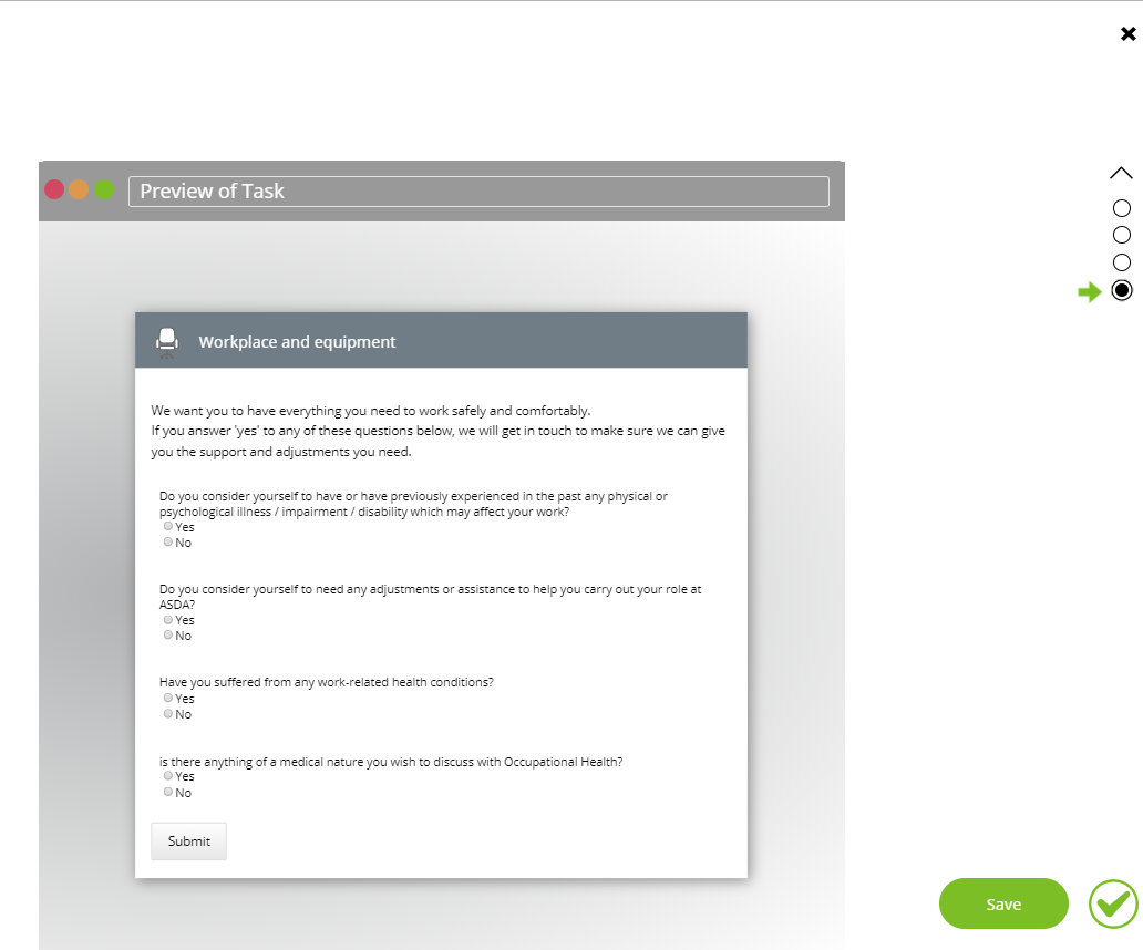 This task allows the control panel user to create a form within a task overlay for the candidate to complete.