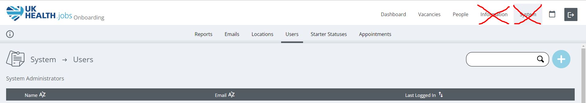 These users do not have access to the ‘System’ or ‘Information’ Settings